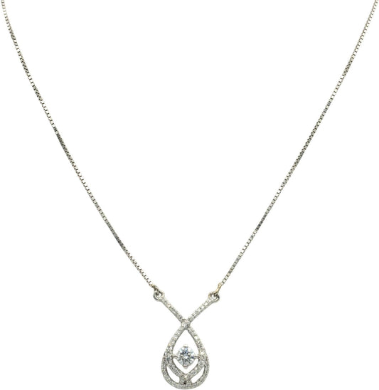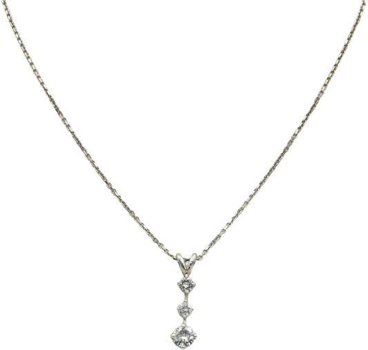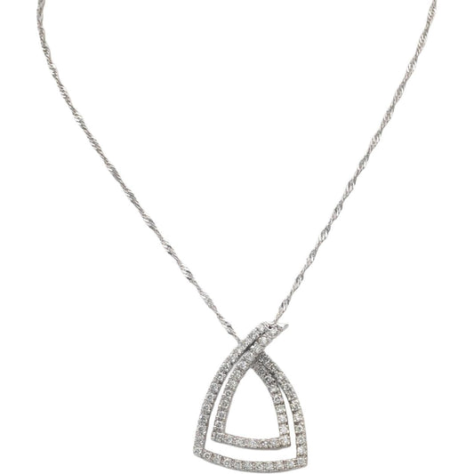 14k White Gold 0.75CT Diamond Past Present Future Pendant Chain Necklace
