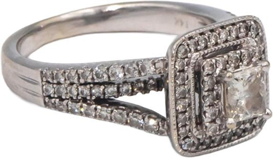 14k White Gold 0.90CT Diamond Engagement Ring w/ 0.40CT Center Size 6