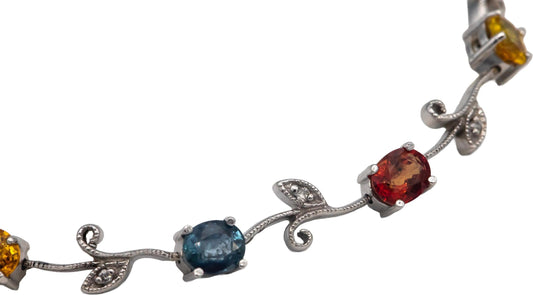 14k White Gold 5.06CT Diamond and Rainbow Sapphire Floral Link Bracelet