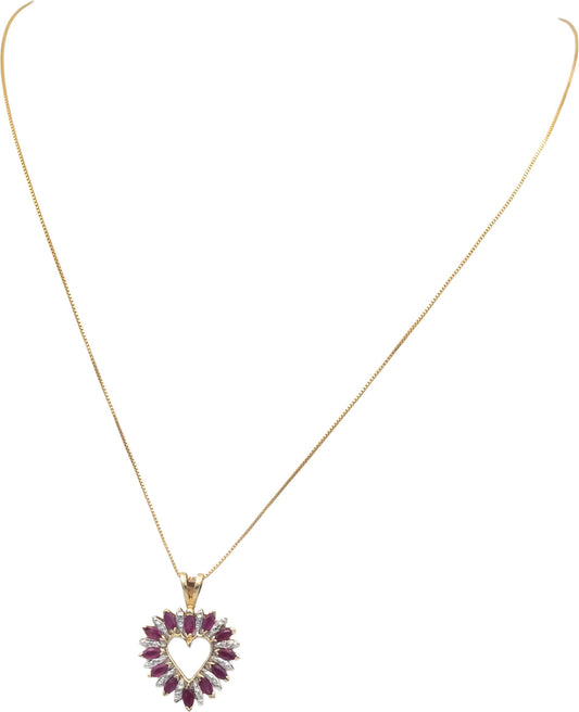 14k Yellow & White Gold Diamond and Ruby Heart Pendant Necklace 0.65CT