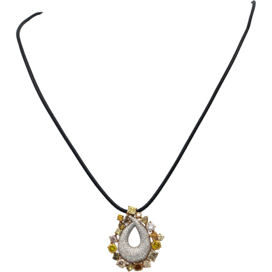 18k White & Yellow Gold White & Fancy Color Diamond Pendant Necklace 3.76CT