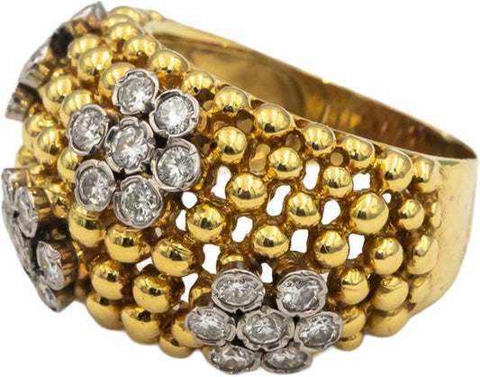 18k Yellow & White Gold VS Round Diamond Floral Cocktail Ring 0.95CT Size 8