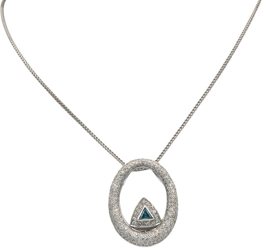 14k White Gold White and Blue Diamond Cluster Pendant Necklace 1.75CT