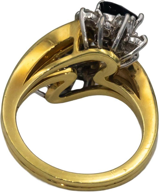 18k Yellow & White Gold VS Diamond and Sapphire Crossover Ring 1.90CT Size 6.5