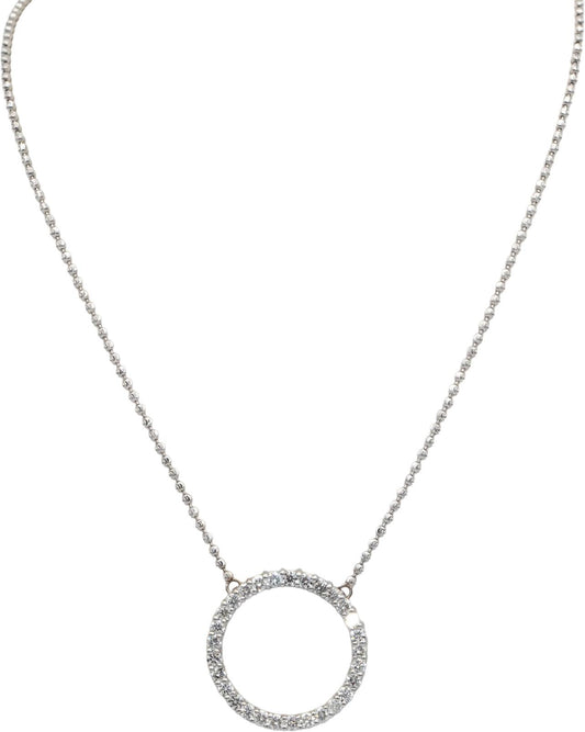 14k White Gold 2.50CT Round Cut Lab Grown Diamond Fixed Circle Pendant Necklace