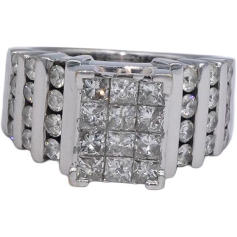 14k White Gold Princess & Round Diamond Cluster Cocktail Ring 2.0CT Size 7