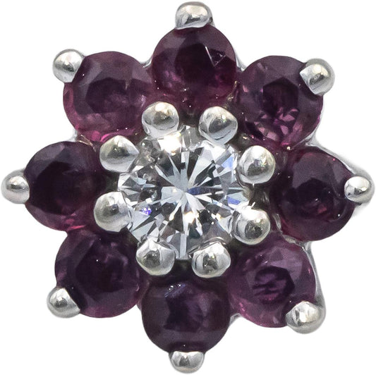 14k White Gold Diamond and Ruby Floral Cocktail Ring 0.85CT Size 8.5