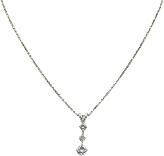 14k White Gold Diamond Past Present Future Pendant Chain Necklace 0.75CT