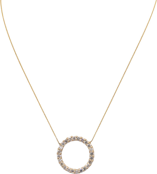 14k Yellow Gold VS Round Diamond Circle Pendant Necklace 1.81CT
