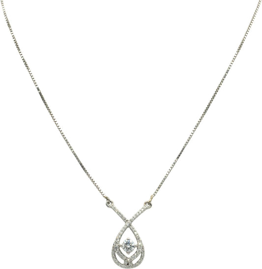 14k White Gold VS Round Diamond Pendant Necklace 0.50CT w/ 0.30CT Center