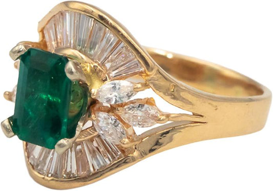 18k Yellow Gold Jewelry Emerald and VS Diamond Cocktail Ring 2.51CT Size 7.25