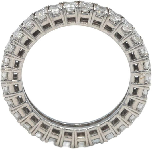 18k White Gold VS Round & Emerald Cut Diamond Eternity Ring 5.0CT Size 6.5
