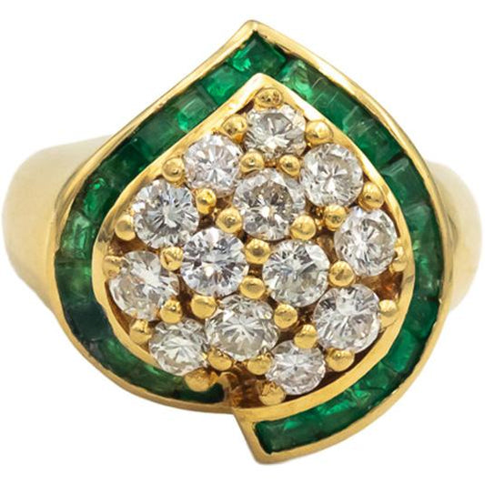 18k Yellow Gold Jewelry Diamond & Emerald Cluster Cocktail Ring 2.16CT Size 5.5