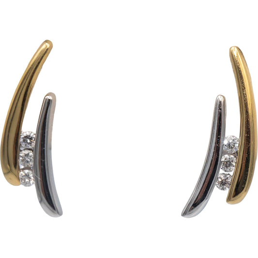 14k Yellow & White Gold VS Diamond Round Cut Abstract Stud Earrings 0.20CT