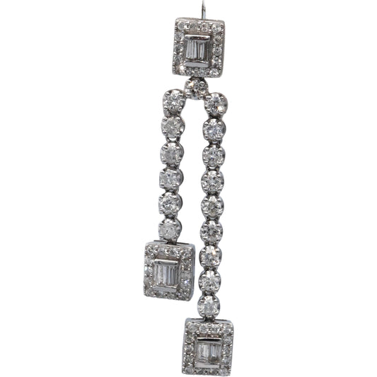 14k White Gold Round & Baguette Cut Diamond Drop Dangle Earrings 2.25CT