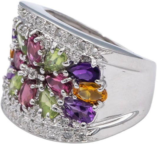 14k White Gold Diamond & Rainbow Gemstone Cluster Cocktail Ring 3.33CT Size 5.25