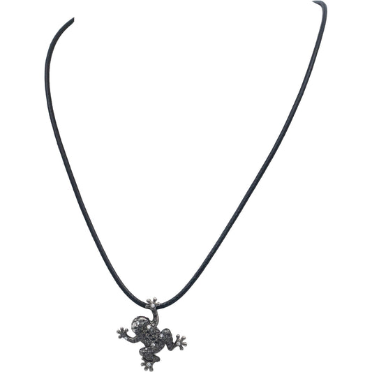 14k White Gold Rhodium 0.25CT White & Black Diamond Cluster Tree Frog Pendant