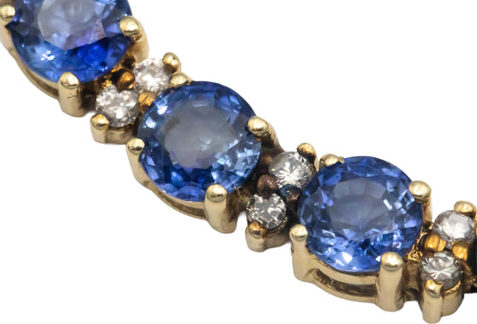CGL Certified 14k Yellow Gold Diamond & Blue Sapphire Tennis Bracelet 8.90CT