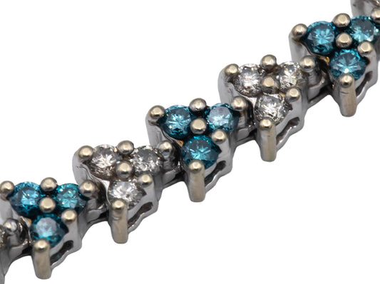 14k White Gold 2.50CT Round Cut White and Blue Diamond Fancy Link Bracelet
