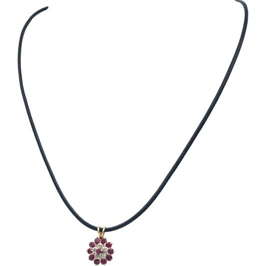 14k Yellow Gold 0.52CT Ruby and Diamond Floral Pendant Necklace