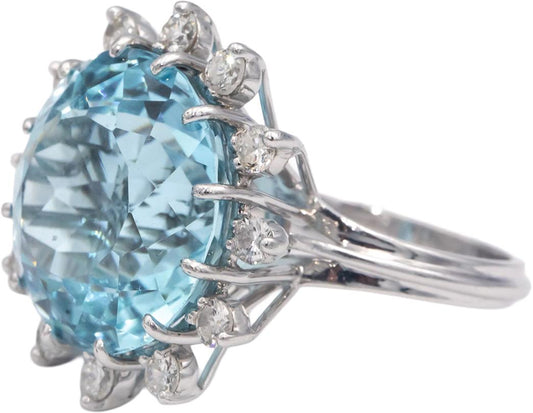 Vintage 14k White Gold VS Diamond & Aquamarine Cocktail Ring 20.84CT Size 8