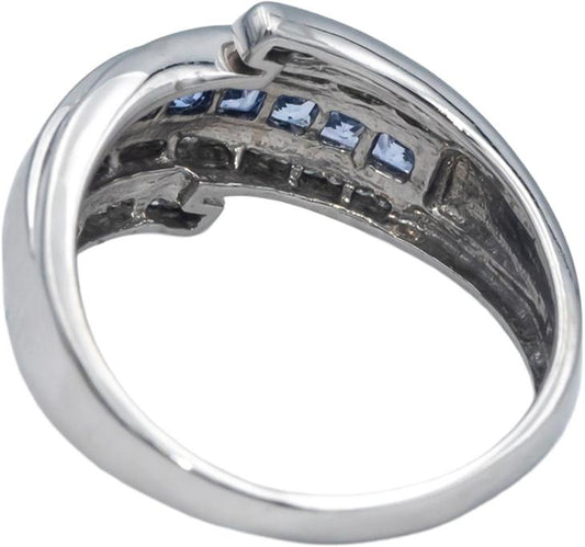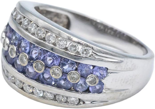 14k White Gold Jewelry 1.25CT Diamond and Tanzanite Band Ring Size 7