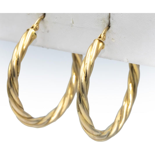 14k Yellow Gold Jewelry Twisted Hoop Earrings