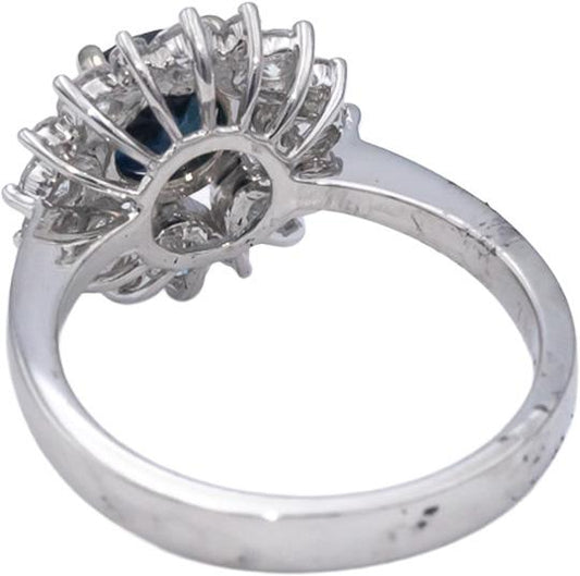 18k White Gold Round Blue Sapphire & Diamond Halo Ring 1.68CT Size 6.5
