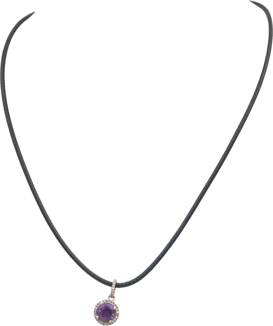 14k White Gold 1.10CT Round Cut Amethyst and Diamond Halo Pendant Necklace