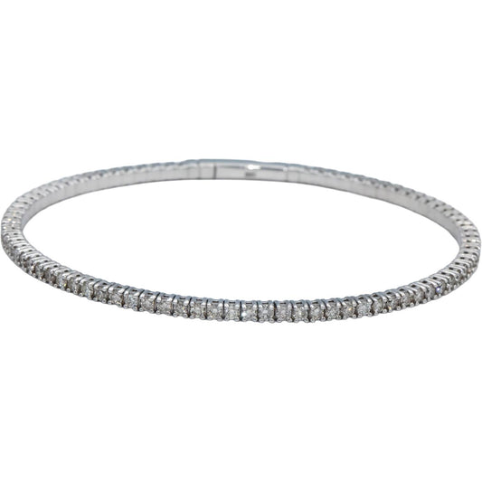 18k White Gold Round Diamond Flexible Bangle Bracelet 2.16CT