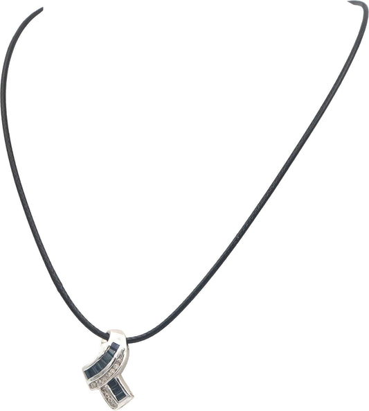 14k White Gold 0.75CT Diamond and Blue Sapphire Pendant Necklace