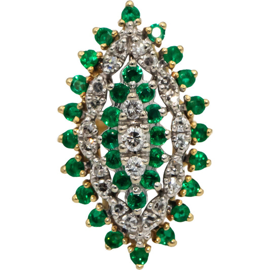 14k Yellow White Gold Round Diamond Emerald Cluster Cocktail Ring 1.05CT Sz. 6.5