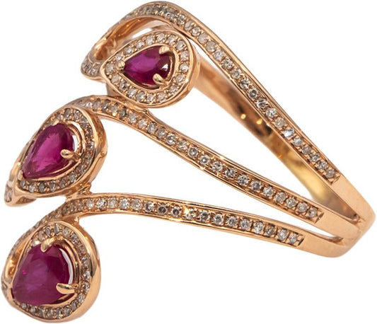 14k Rose Gold Pear Ruby & Round Diamond Cocktail Ring 1.0CT Size 8