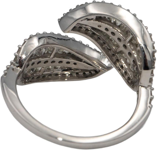 14k White Gold Round & Baguette Diamond Crossover Floral Ring 1.0CT Size 7