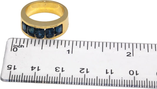 18k Yellow Gold 2.0CT Medium Blue Sapphire Band Ring Size 6.5