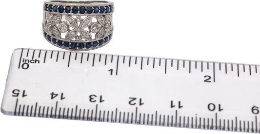 14k White Gold 0.66CT Diamond and Sapphire Floral Band Ring Size 5.25