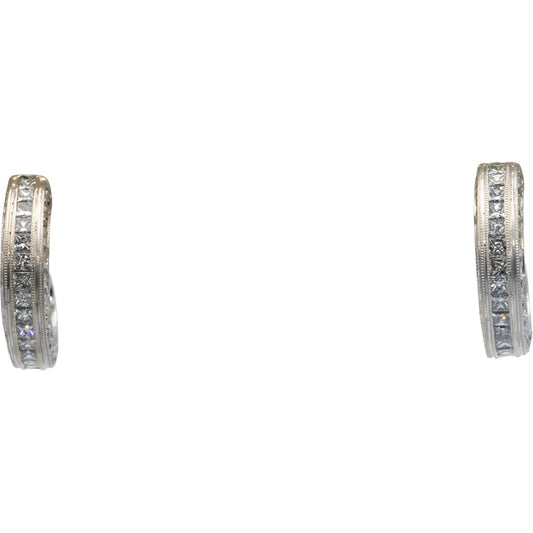 14k White Gold 0.20CT VS Diamond Satin Finish Hoop Huggie Earrings