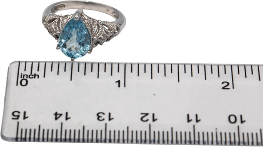 14k White Gold Jewelry 2.02CT Diamond and Aquamarine Filigree Ring Size 6.5