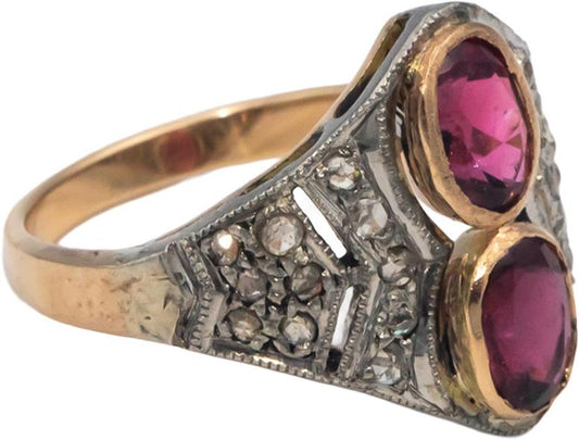 Vintage Antique 10k Gold & Silver 0.20CT Diamond and Tourmaline Ring Size 7.25