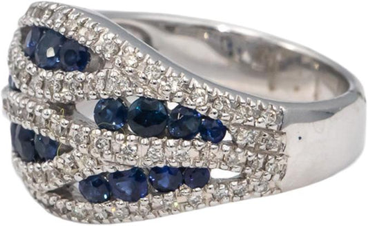 14k White Gold Round Diamond & Blue Sapphire Cocktail Ring 1.15CT Size 7