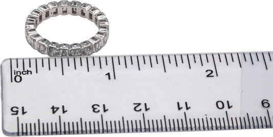 18k White Gold 2.33CT Emerald Cut bezel set Diamond Eternity Band Ring Size 6
