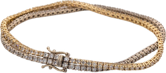 14k White and Yellow Gold Diamond Double Row Tennis Bracelet 4.64CT