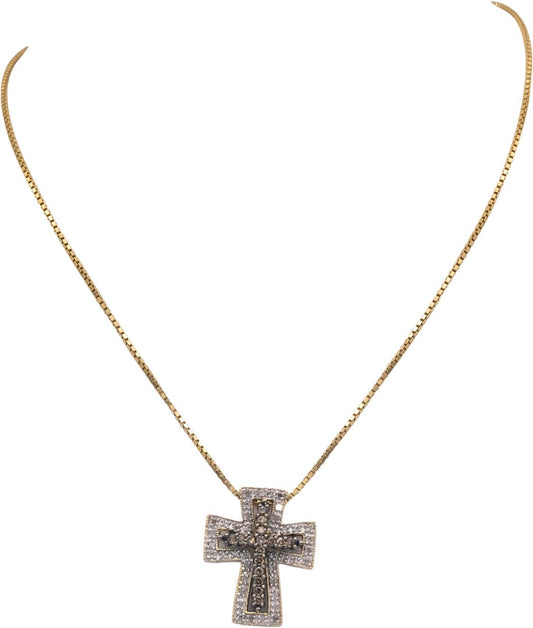 14k Yellow & White Gold 0.45CT Round Cut Diamond Cross Crucifix Pendant Necklace