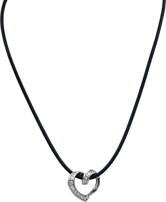14k White Gold 1.0CT VS Baguette Cut Diamond Heart Slide Pendant Necklace