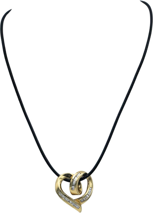 18k Yellow Gold 1.0CT VS Baguette Cut Diamond Heart Pendant Necklace