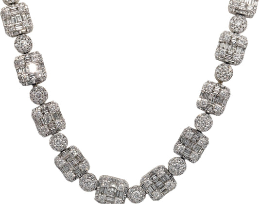 Diamond 14K White Gold VS Round & Baguette Iced Out 22.75" Long Necklace 28.0CT