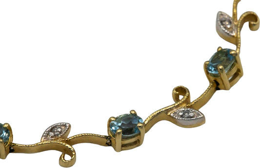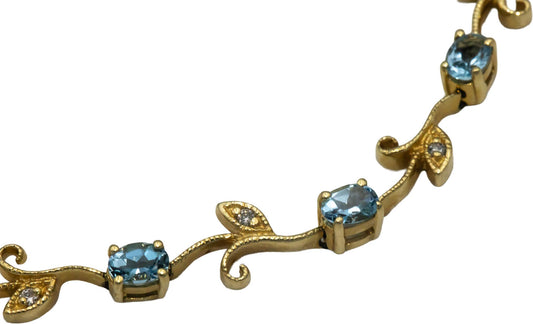 14k Yellow Gold 1.56CT Diamond and Aquamarine Floral Link Bracelet