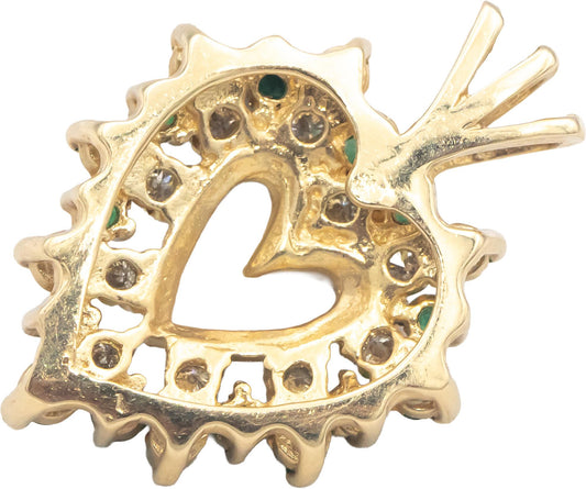 14k Yellow Gold 0.85CT Diamond and Emerald Cluster Heart Pendant