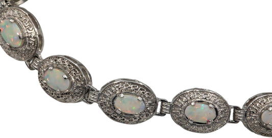 14k White Gold 3.0CT Oval Cabochon Cut Opal Chain Bracelet