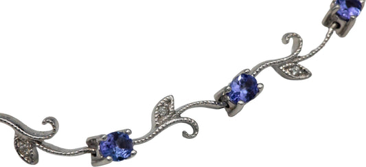 14k White Gold Jewelry 1.56CT Diamond and Tanzanite Floral Link Bracelet